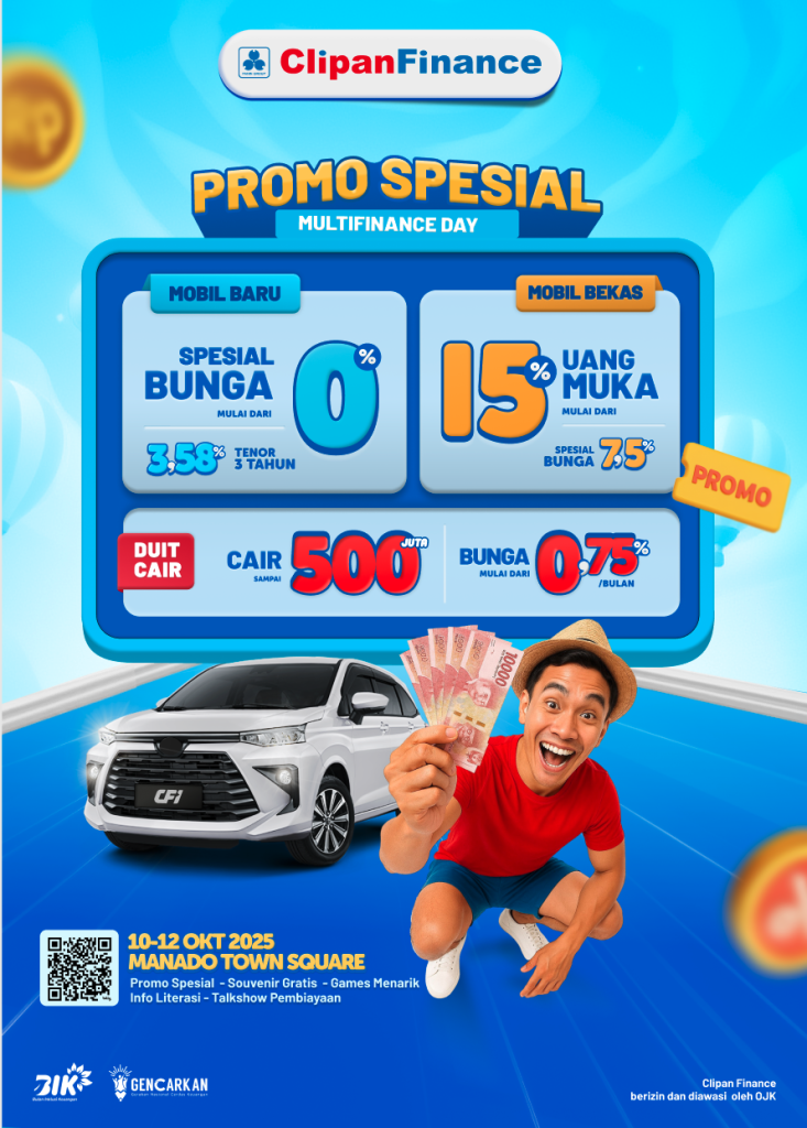 Siap-siap, warga Manado! Clipan Finance bakal hadir di Multifinance Day 2025 di Atrium Manado Town Square (Mantos) 3. Event ini jadi bagian dari Bulan Inklusi Keuangan (BIK) OJK bareng APPI. Dengan tema kece “Tambah Tangguh, Tambah Mudah Wujudkan Mimpi Finansial”, Clipan Finance siap bikin weekend kamu lebih seru, lebih bermanfaat, dan pastinya penuh hadiah keren! Apa yang Bisa Kamu Lakukan di […]